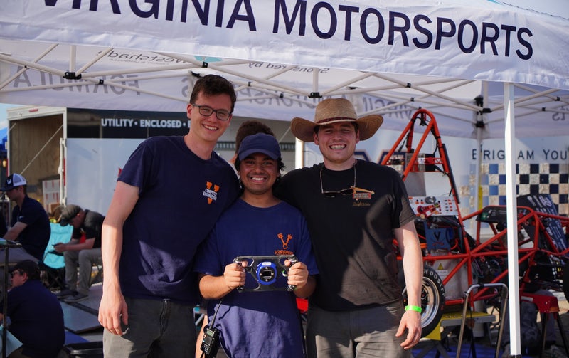 I was also tasked with designing a quick-release steering wheel for the 2024 car. The previous design used aluminum sheet metal sandwiched between sheets of carbon fiber, so there was room for significant weight reduction. Without the need for paddle shifting, there was more ergonomic freedom since the wheel could be gripped fully at all times. The wheel was made from a carbon fiber/kevlar weave sandwiching a piece of foam, and the edges were sealed with structural epoxy. Billet aluminum potted inserts were epoxied into the foam so that the quick connect could be attached. 3D-printed prototypes were used to gauge driver preference, and feedback was incorporated heavily into the final design.