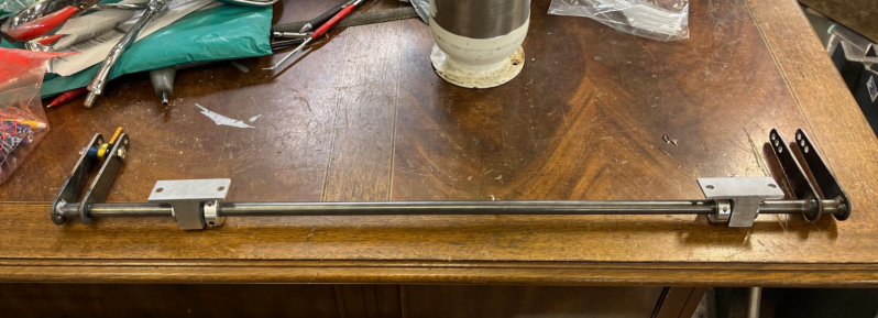 I designed and manufactured an anti-roll bar to facilitate suspension adjustability and testing. Pillow blocks constrained by shaft collars with flanged oil-impregnated bushings were used to allow the ARB to rotate freely and keep loads in plane (no lateral shifting of the bar). Calculation of the ARB rate involved computing the torsional stiffness of the bar and translating this to a linear rate at the wheel, taking into account the installation ratio from the bell crank to the wheel. The ARB was constructed from welded 4130 steel, and the pillow blocks were made from machined aluminum. Research and development was also done for a bladed cantilever anti-roll bar for the 2025 season.