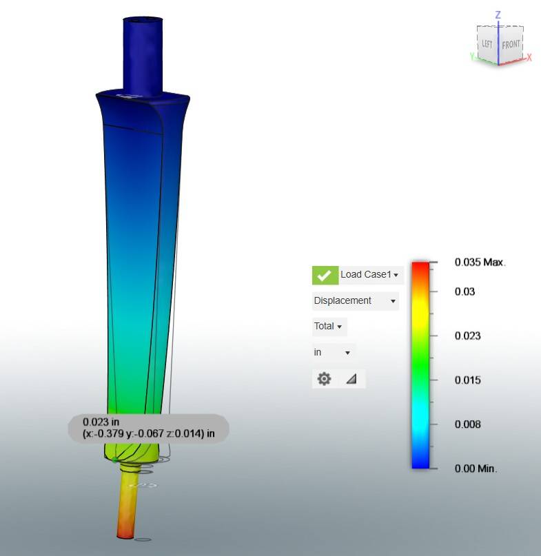 Initially, the blade was assumed rectangular to make hand calculations easier. The actual stiffness was determined using FEA in Fusion360 for a tapered blade geometry.